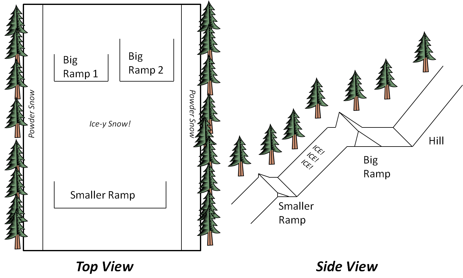 So that you can understand the following circumstances, I’ve drawn up a few diagrams.  The figures below represent the hill, ramp, and surrounding geography.